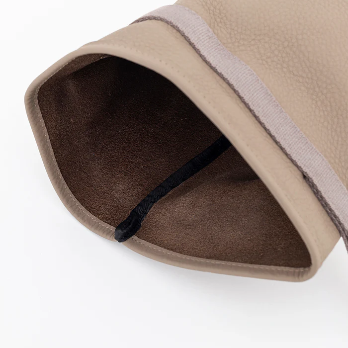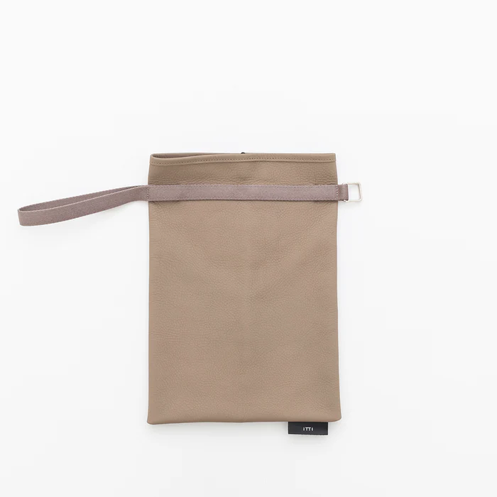 ブランドの定番にして人気アイテム、”RICE BAG”。米袋をモチーフに派生させマイナーチェンジを続けながらブラッシュアップ。日本の伝統的な「粋」を感じさせる仕上がりと、物を入れてテープを金具に通すだけといった簡易さに中毒性があると好評。
