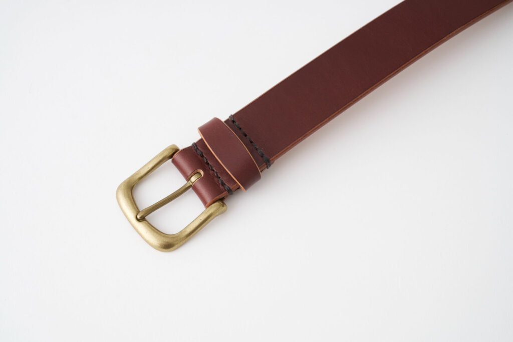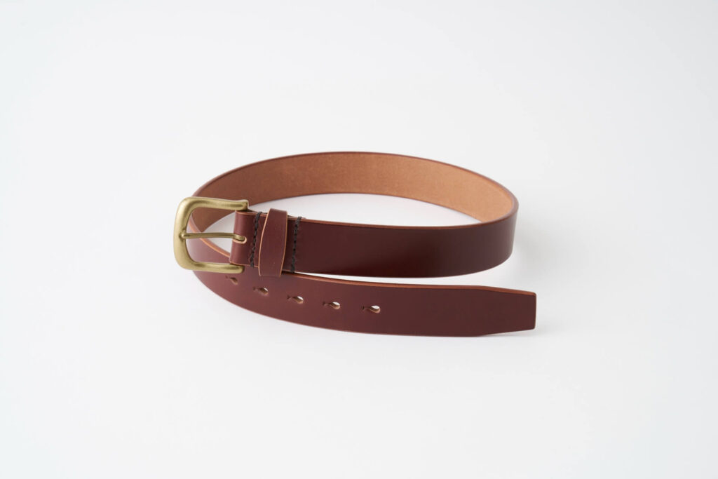 栃木レザー正規代理店 和宏のオリジナルブランド。他社に卸されていないハーネスレザー(多脂革) を使ったレザーベルトは、革の厚み5㎜、幅35㎜で一枚革の魅力を最大限に生かす。カジュアルになり過ぎず、デニムやチノパンツに合わせやすい。