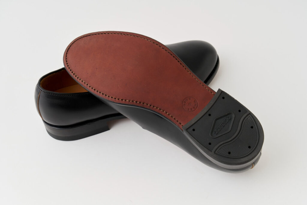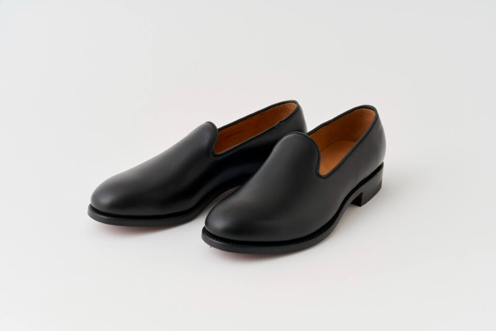 ダイレクトウェルト製法で製靴したオペラパンプス。ソールにはダイレクトウエルト製法の利点を最大限に生かすため、オイルベンズを使用。日常とは対極にある靴をデイリーに使えるよう、カジュアルな革を用い一切装飾のない一足を仕上げた。