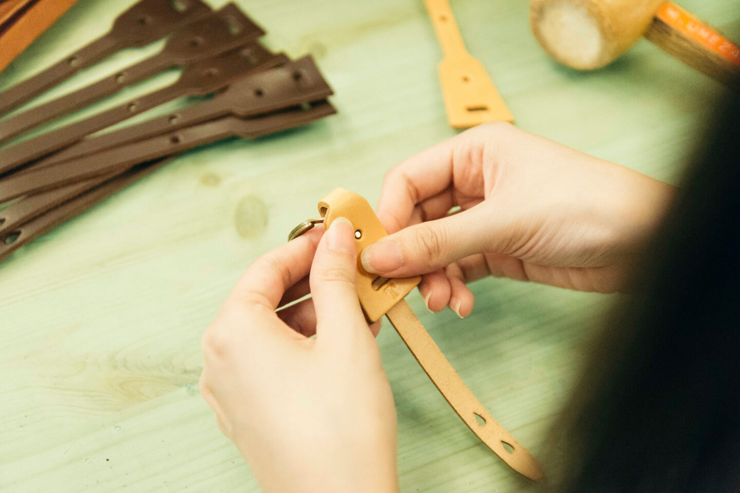 レザーやパーツの組み合わせを選べるワークショップ。手づくりキットもあるので、自宅でもトライできそう。