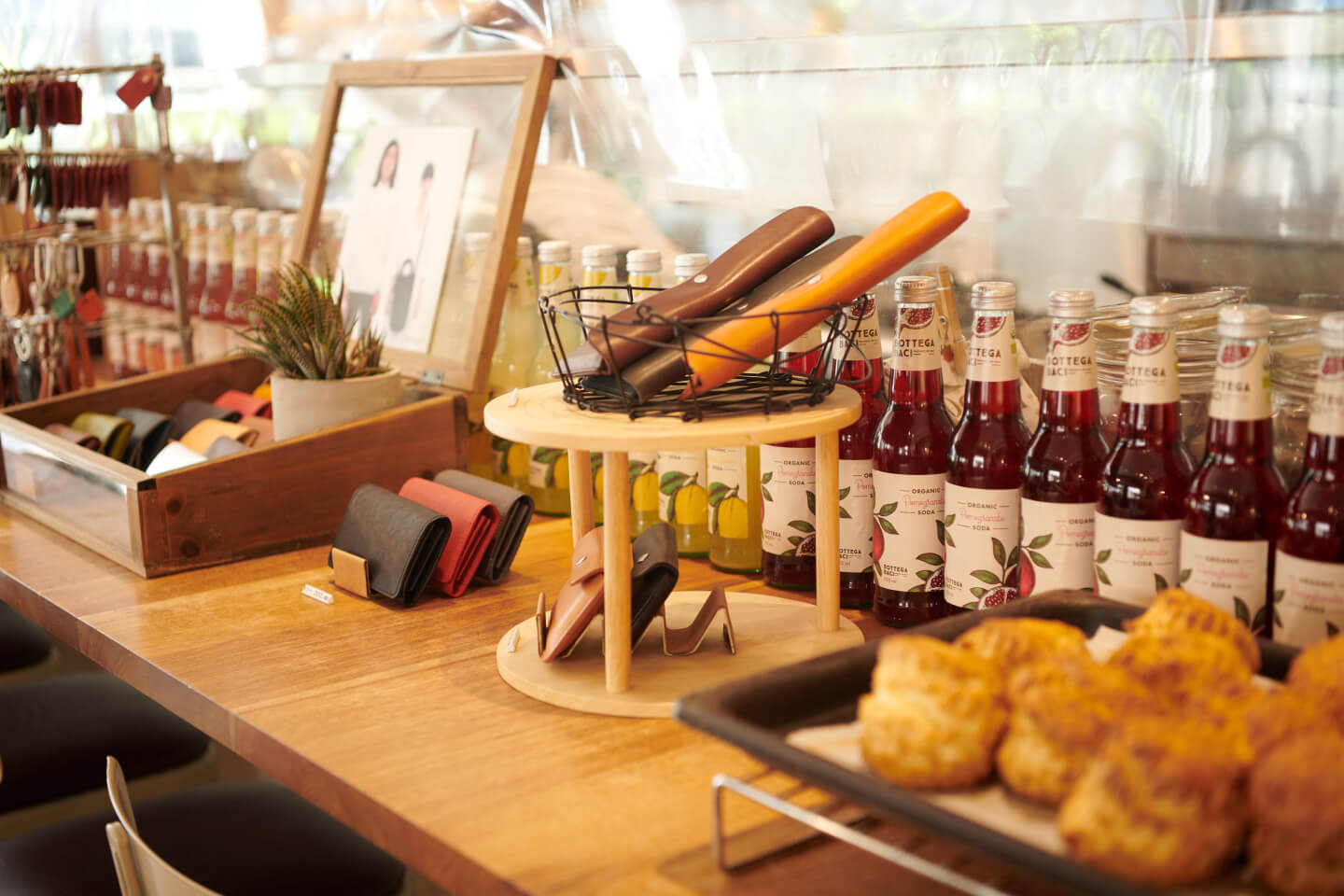 手作りランチ、焼き菓子が人気のカフェ。皮革産地・たつの市産の革を使用した自社ブランド「numeri」も展示販売。