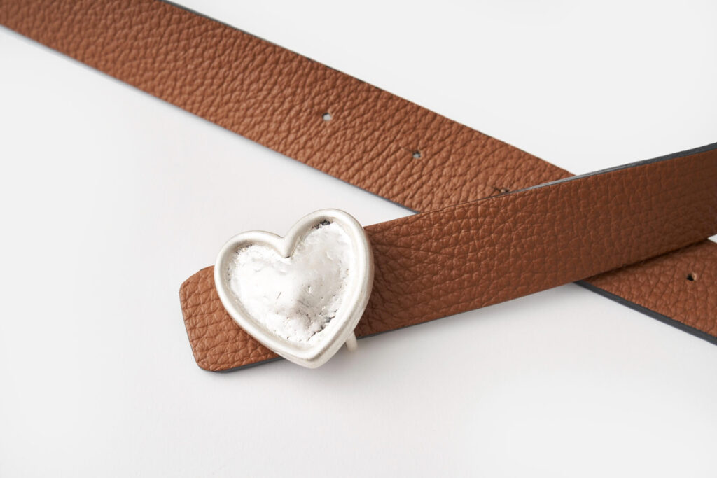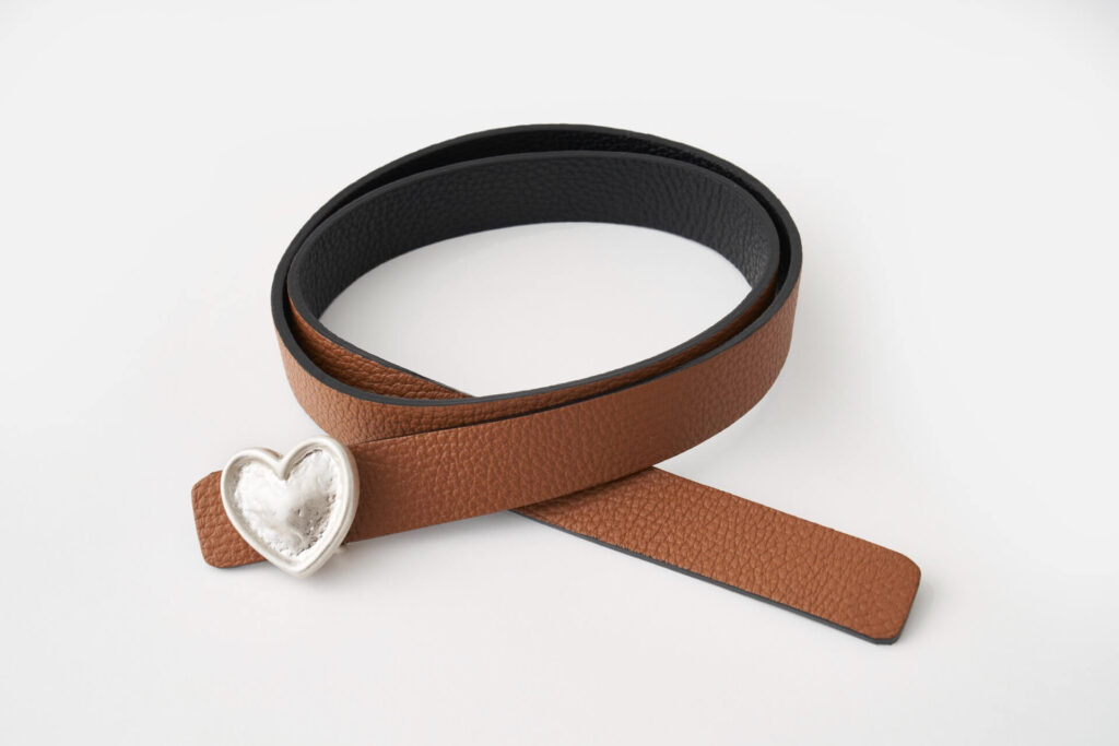 belllabell develops domestic production with a focus on leather products. A double-sided reversible belt is convenient. Made of light and soft leather, it fits well and is stress-free. The heart motif buckle is popular because it gives a visual effect of the waist mark and leads to style enhancement.