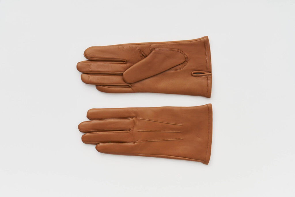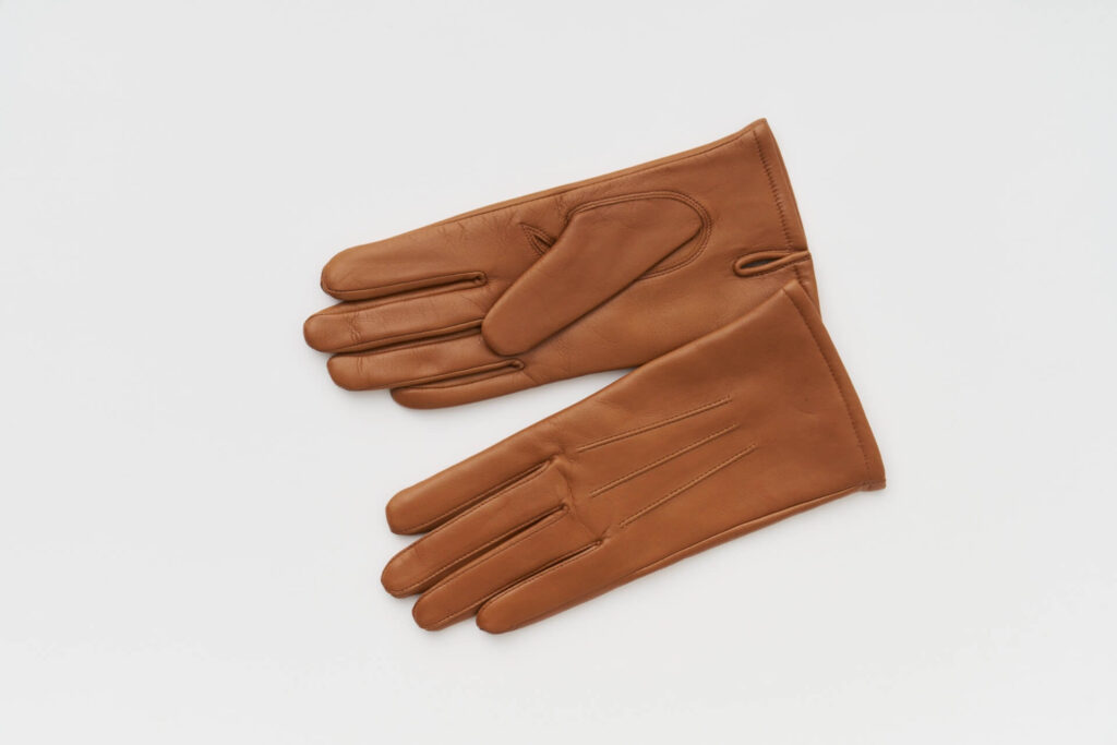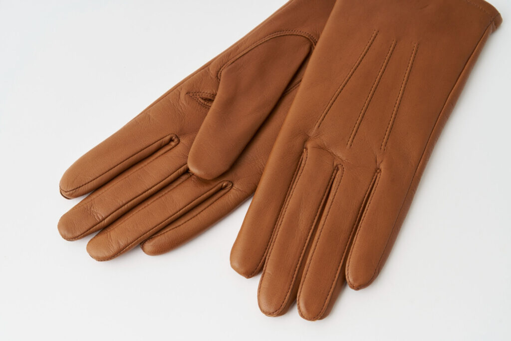 Soft and smooth sheepskin gloves. They mold to your hands with wear. A key feature is the technique that makes your fingertips look beautiful when worn. Each pair is carefully hand-sewn in Japan. The inner lining uses warm, 100% cashmere knit.