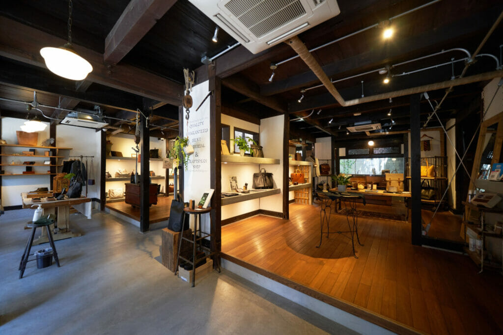 A store/workshop that has been renovated from a Kyomachiya (traditional house in Kyoto). Customers can experience the traditional craftsmanship and leather collection as well as enjoy the atmosphere of the ancient city.