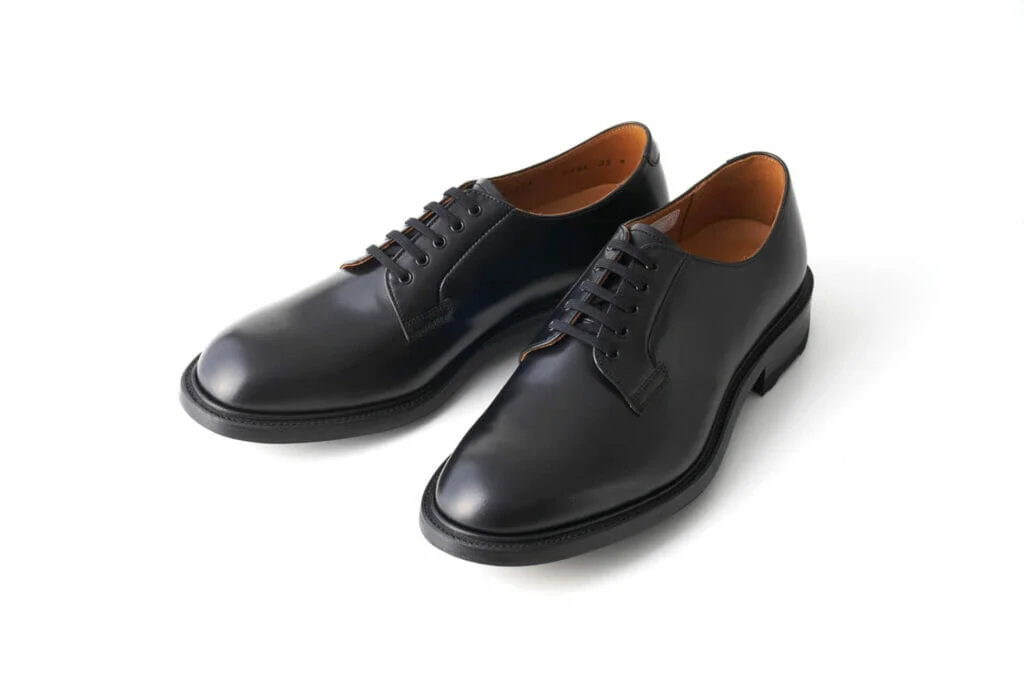「ニュークラシック」コレクションのプレーントゥは、リッジウェイソール搭載で幅広い着こなしに対応。足元のクラス感アップにも貢献する、透明感ある艶のある質感にも注目。