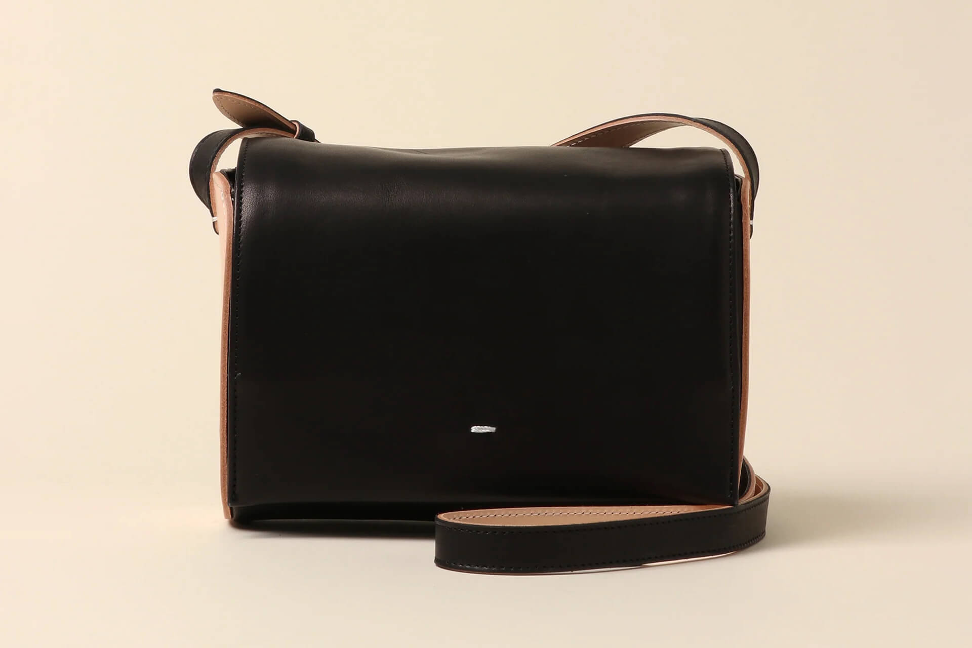 ブラックレザーと白ヌメレザーのモダンなコントラストが印象的。構築的なフォルムも特徴で、かつマチ幅もしっかりあるので想像以上の収納力を発揮してくれる。内外に設置されたファスナーポケットは、貴重品やカギなどの大切なものを収納するのに重宝するはず。