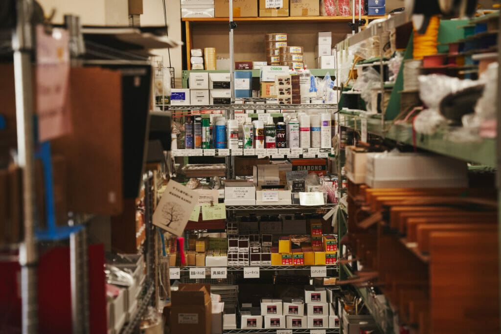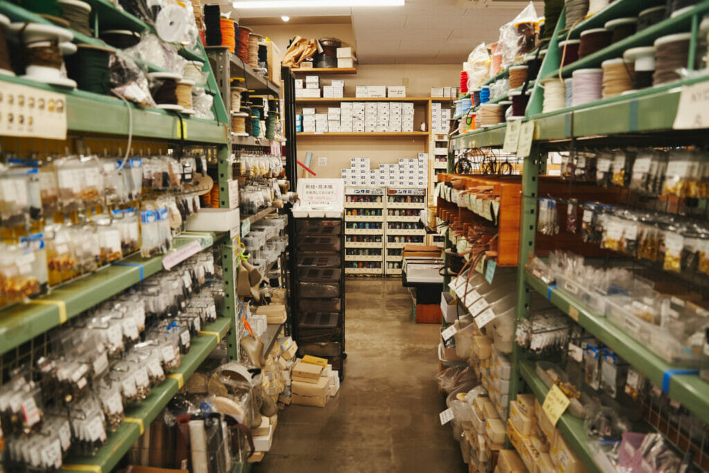 製靴用資材・工具を中心に、ケア用品、修理用資材が充実。ネットショップもあり、1点から購入できる。店舗では限定品・中古品などの販売も行う。ここでしか出会えないレアアイテムや掘り出しものが見つかるかも?
