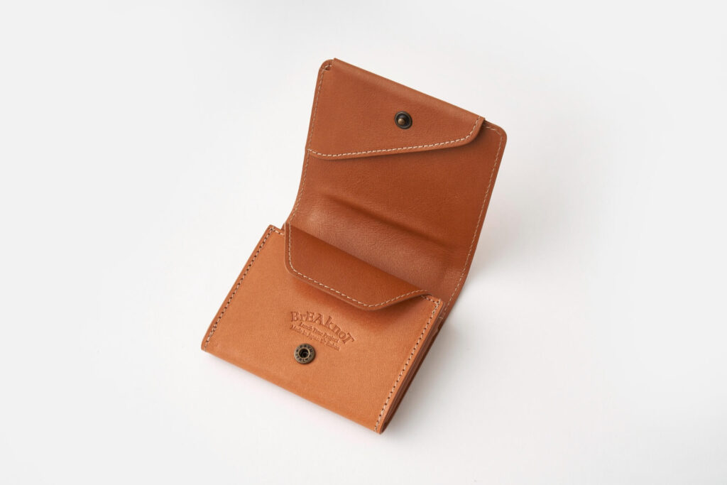 “想製作至今為止沒有製作過的皮革製品”BrEAknot是從皮革工匠們的玩心和不厭其煩的探究心中誕生的。 迷你型是立式的二折錢包,雖然有緊湊的尺寸感,但是收納力和使用感覺也很好的一道菜。 無現金派和空手派。