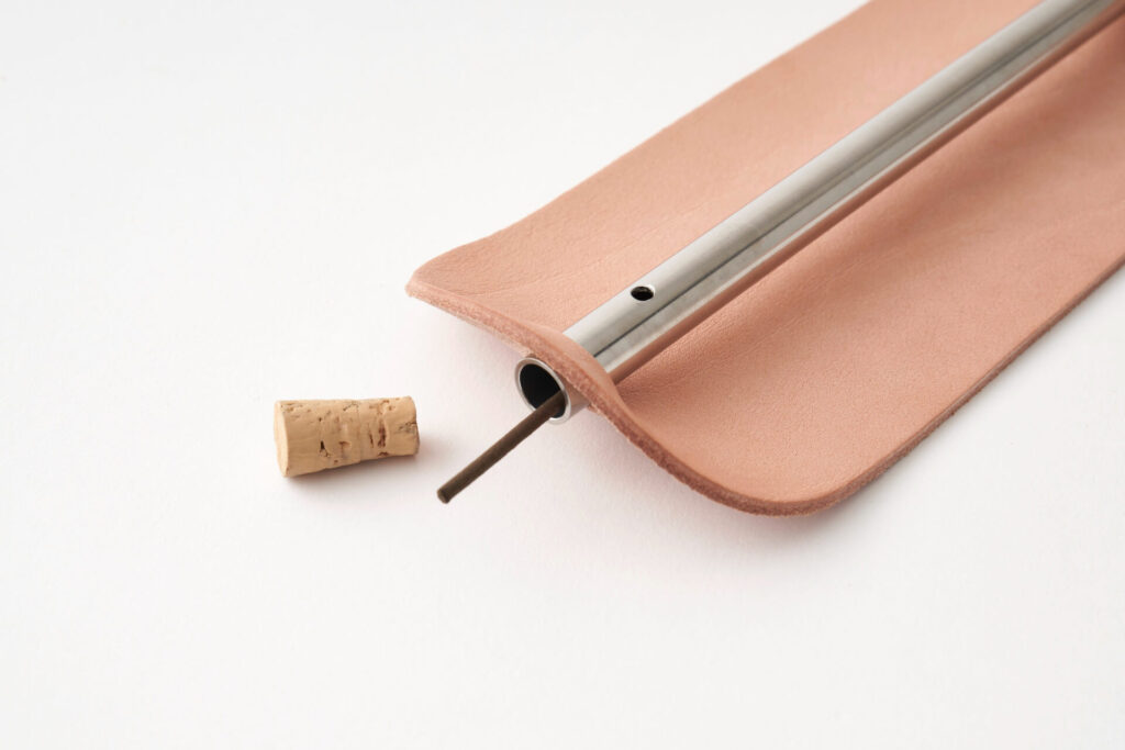 早上的一段時間,想復位的時候,聽香的人新增中,提議從把「空間和時間來往」做為題目的品牌HIKER能攜帶的香立。 在不銹鋼管的小孔中立香使用,可以在管中收納線香。