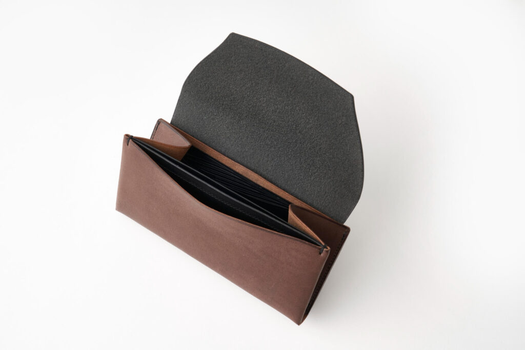 追求充分利用皮革特性的輪廓。 展開花費時間培育,製作形式的產品。 全部由村上裕宣自己手工製作。 用脚踏縫紉機的縫製,用皮革菜刀的手切等手藝人的部分和創造性融合。