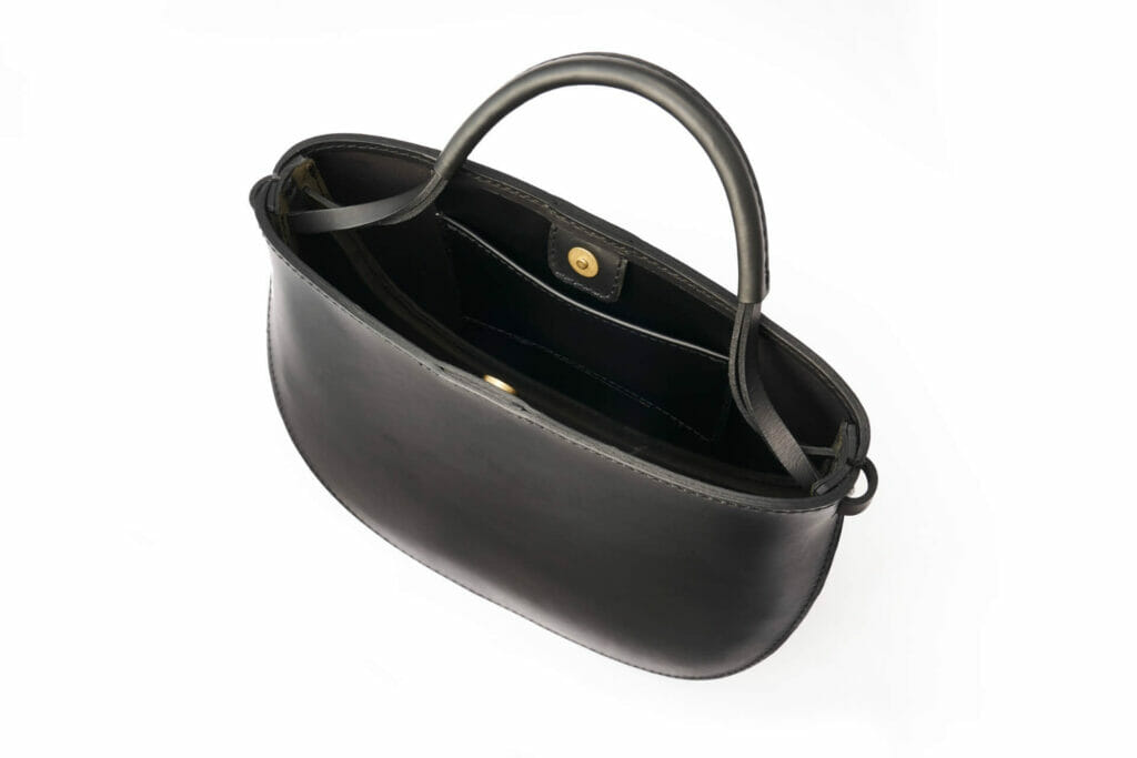 此款手提托特包有著半圓形的外觀及拉寬的底面設計,提把的細緻設計突顯包款整體氛圍。在包包重要的部位以極厚材質重疊縫合,呈現出僅有皮革才能擁有的厚實手感。