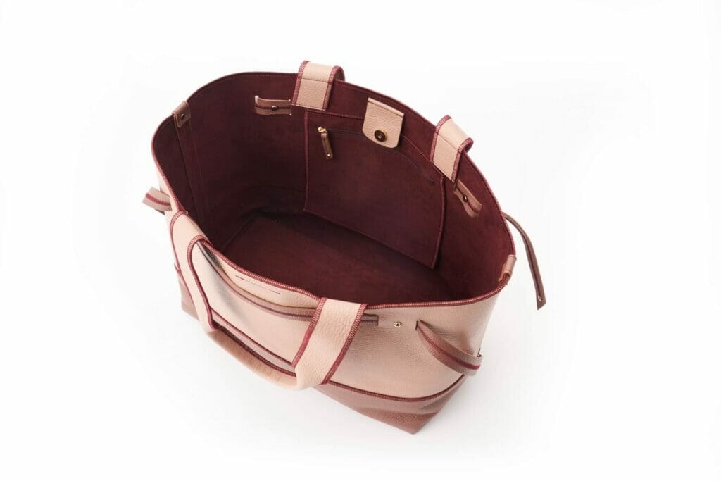 Riscol以「帶著包包,所有人皆可迎接新生活」為理念製作每款包包。不僅是顧客,包含製作者,所有人皆能因皮件迎接新生活的瞬間。「coccoami」這款原皮托特包重量僅有650g!使用時能讓人感到愉悅的此款包包,因使用縫製皮革的專用縫紉機縫合包包襯裡,因此能達到如同僅使用一張皮革製成的輕量感。