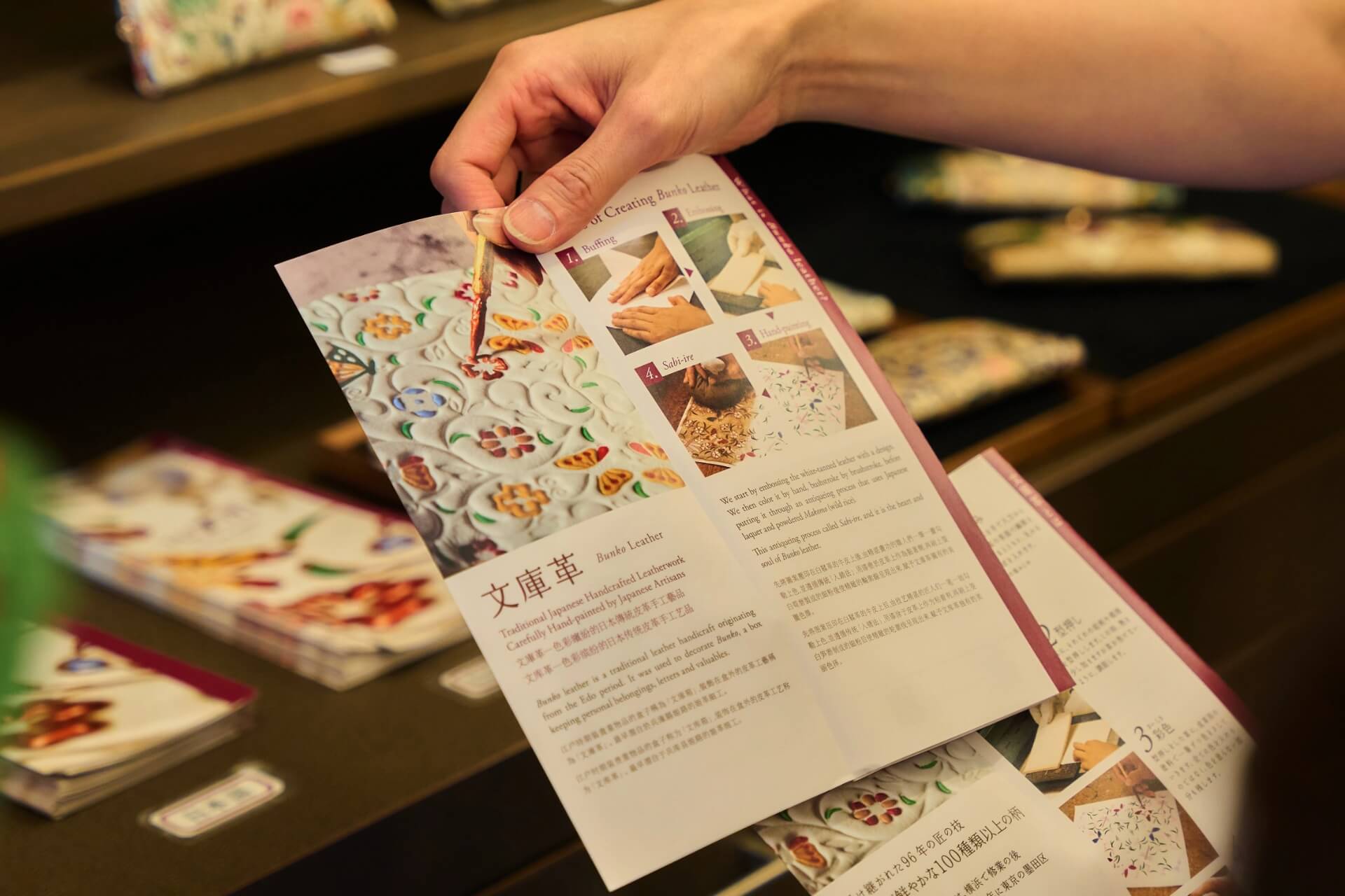 將日本稀有皮革產地-兵庫縣姫路市的傳統工藝「姫路革細工」技法作為基礎,結合獨特製法製作出文庫革。除了精典的花卉圖案外,更推出包含貓咪、風神雷神、聖誕節、埃及等多種細緻圖案。