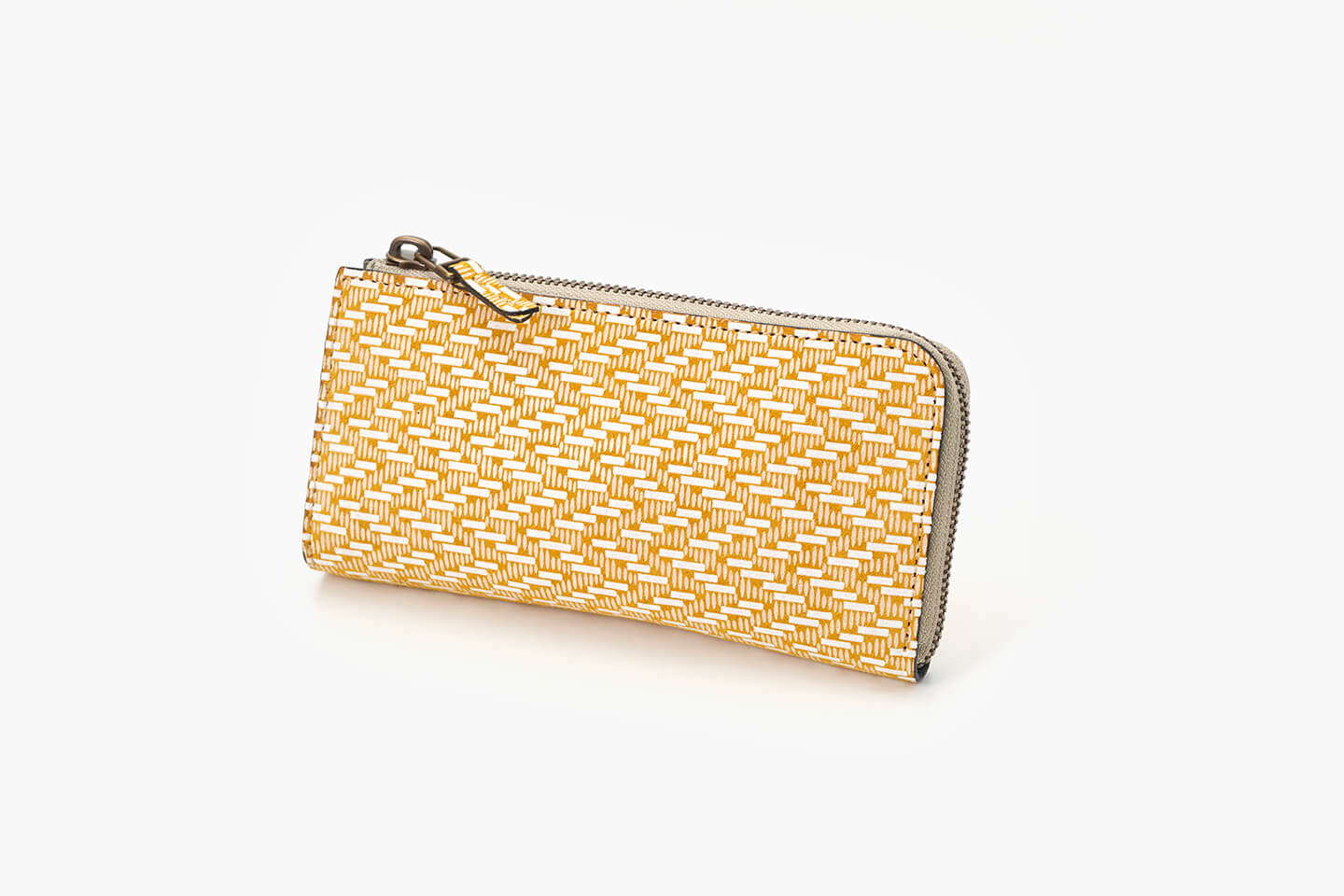 透過在國產的豚麂皮上貼上牛麂皮,使之兼具强韌性及柔和感。表面施予人字形圖紋印花,營造出華麗且混合日本西洋的雰圍。