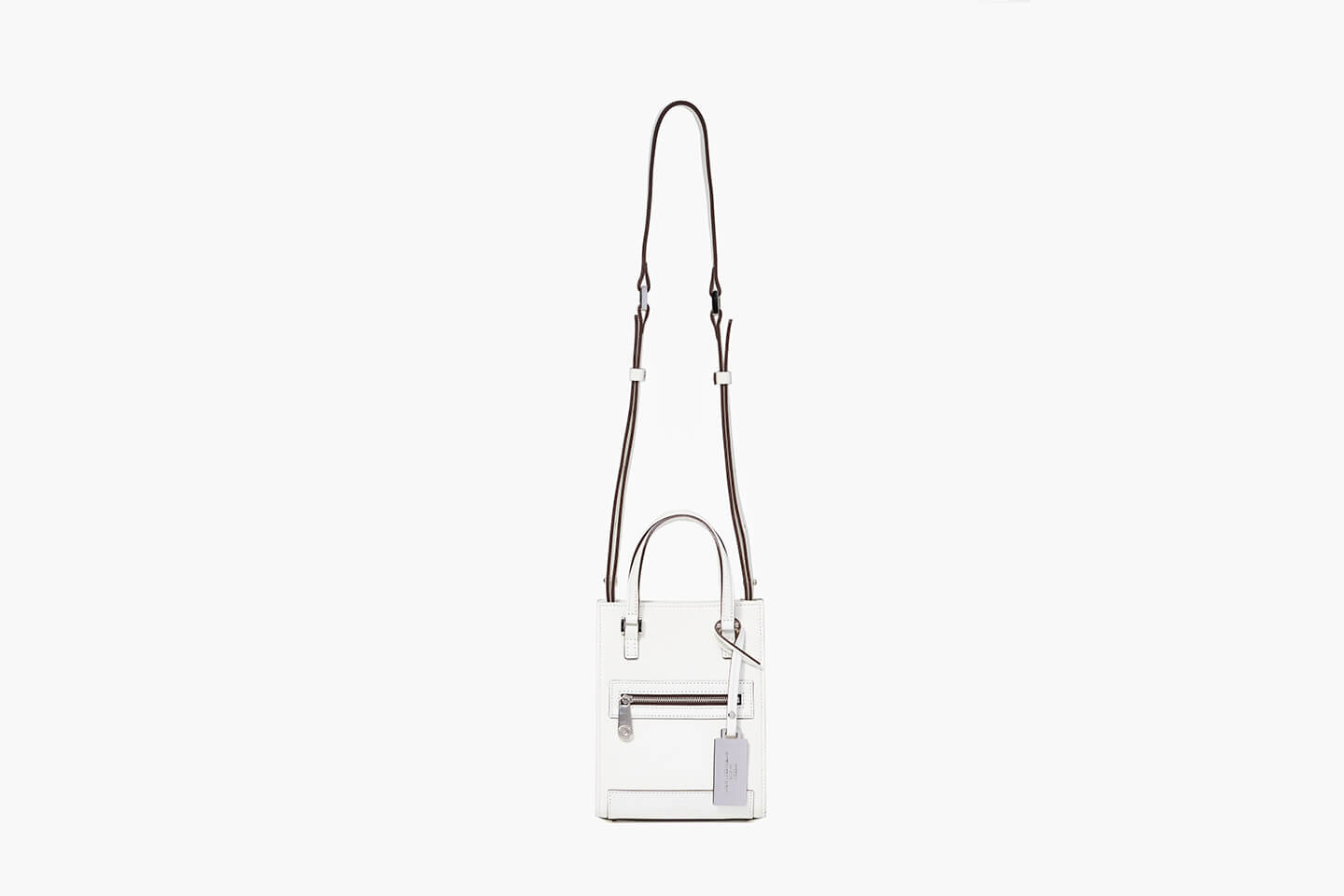 CREEZAN的白色皮件系列。方形極簡設計包款因可搭配各種服裝風格受到喜愛,選配銀色系金屬部件呈現對比風格。