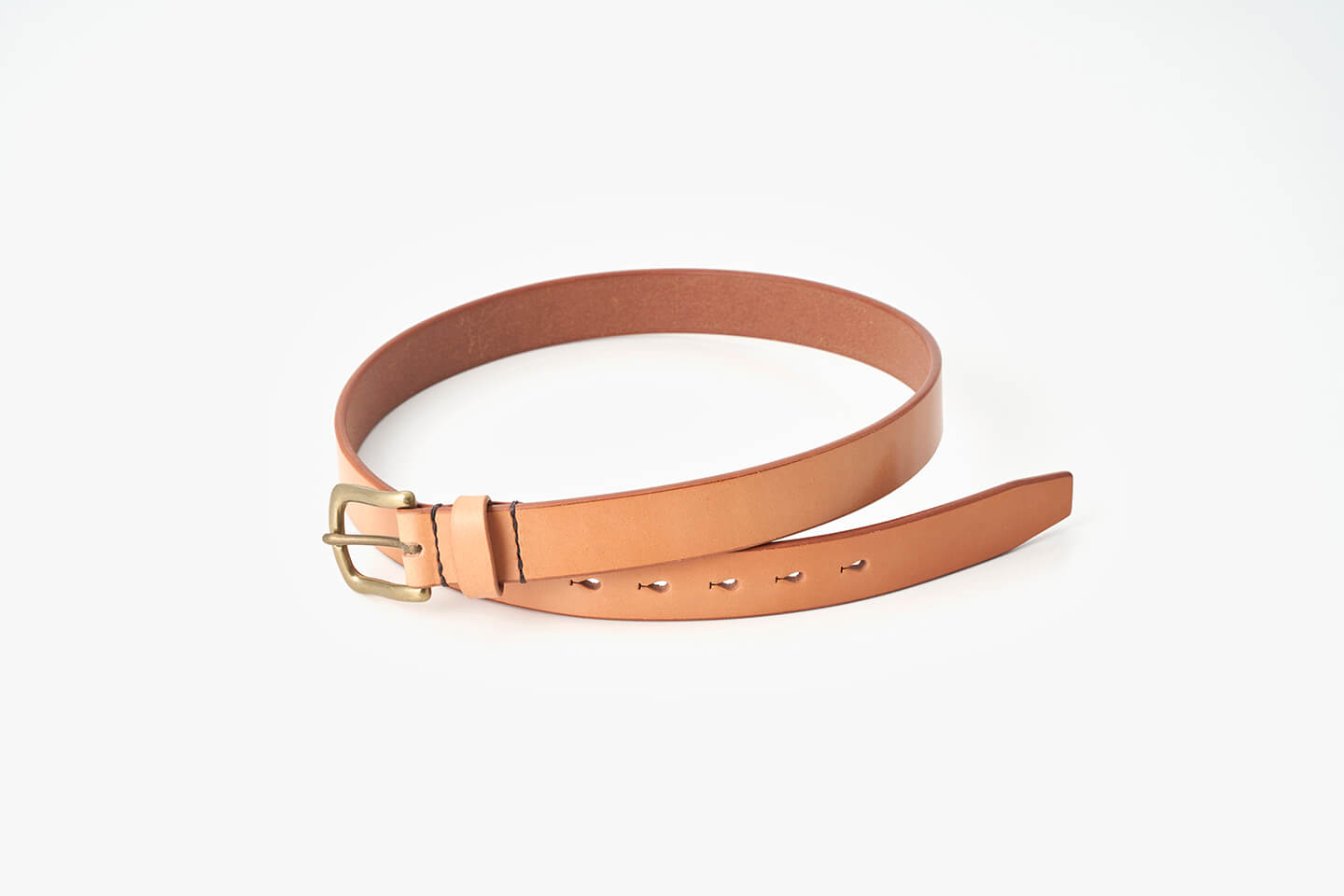 minca系列採用栃木皮革稀有的馬具皮革製作,具有結實特性。此款細版中性皮帶尺寸寬30mm,配戴後使腰部更有型。