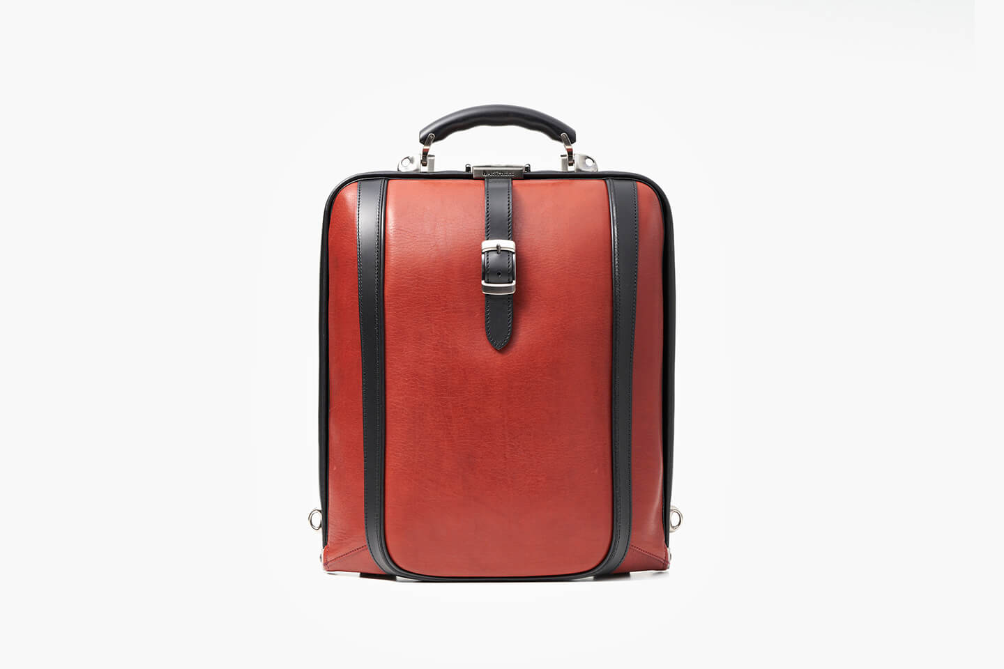 皮革鞣製及染色製程皆使用茶葉渣環保回收素材。皮帶採用「ZeRoG」獨家開發可分散行李重量的材質,外觀厚實穩重兼具舒適攜帶性。