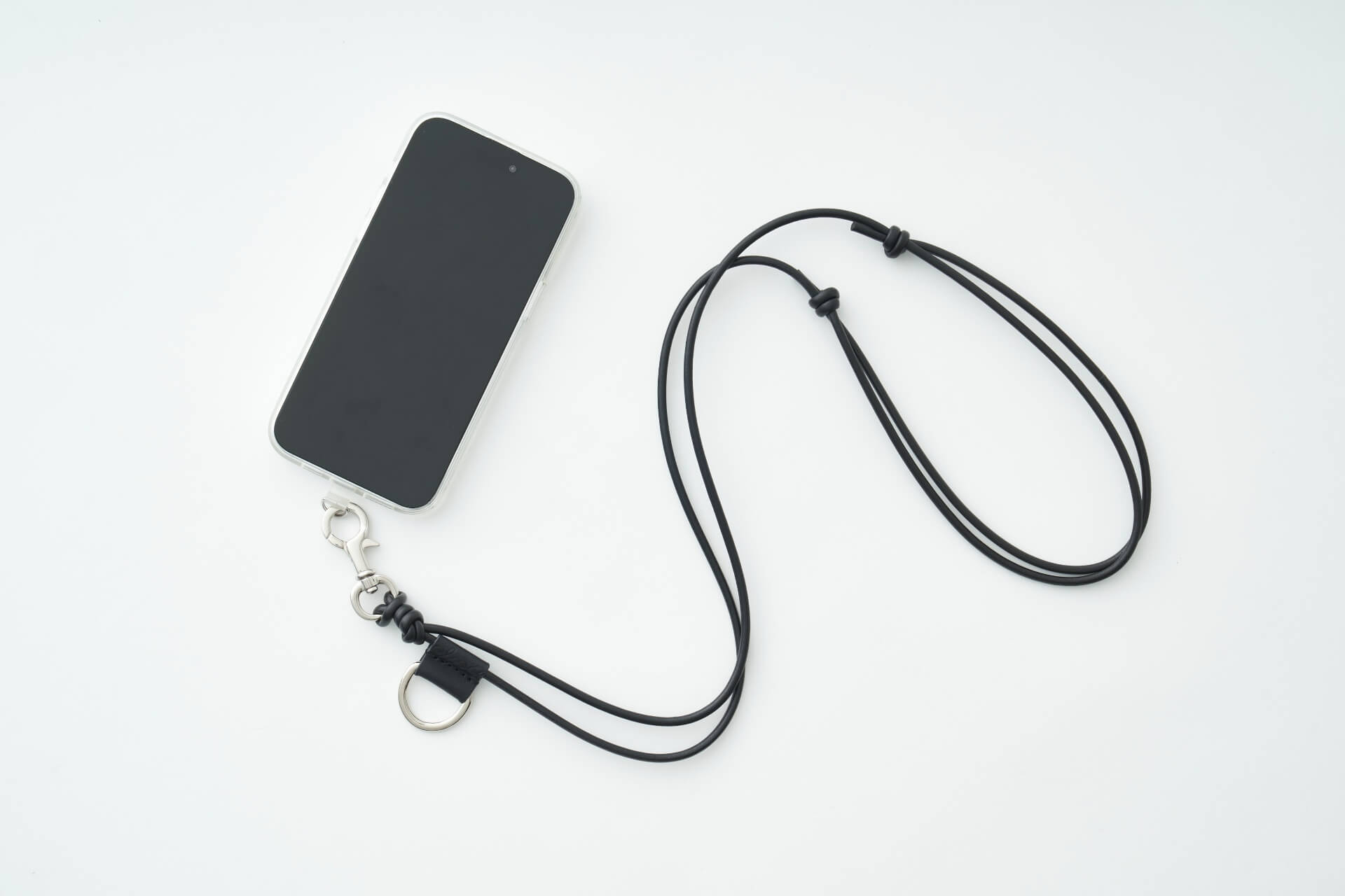 皮革制的手機掛件,能簡單地安上在手頭的情况的優秀的東西。 可以調整到49~85cm的長度,也可以享受在附屬環上安裝了鑰匙環等的整理。