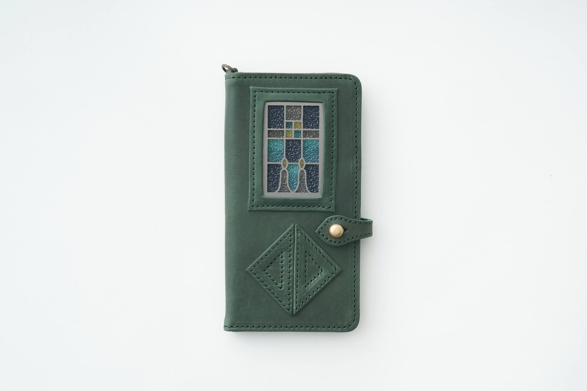 再現了復古的彩色玻璃色彩的玻璃和啞光質感的莫斯特羅皮革的平衡絕妙。 因為智能手機的收納部是滑動式的,所以拍照也很智慧。