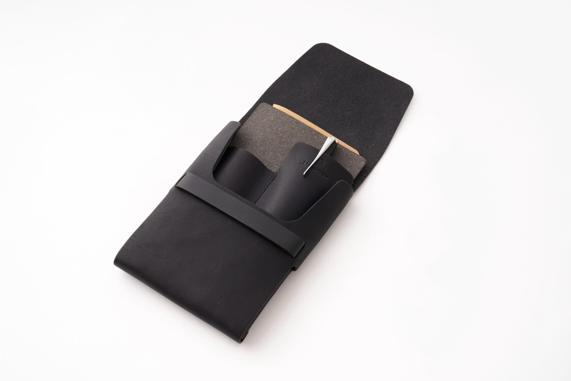 使用了厚度0.5mm的油加工的牛皮的包,緊湊地折疊的優秀東西。 交叉狀的方向盤也成為折疊時的帶等,漂亮地兼顧設計和功能。