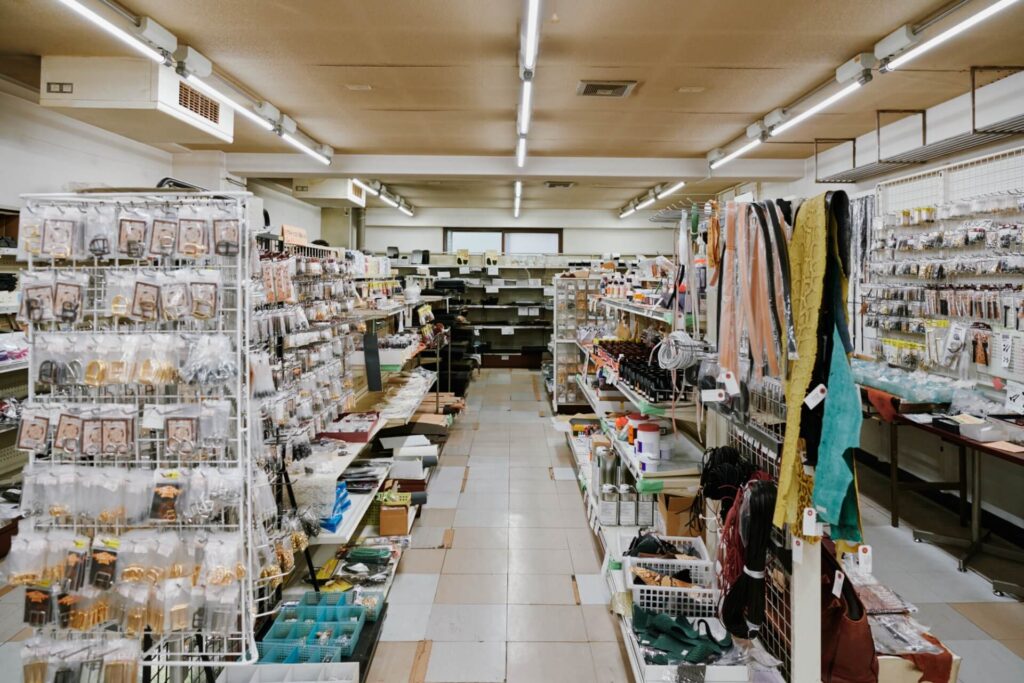1951年創業的皮革及皮件工藝品店。店內備有豐富齊全的皮革工藝材料、製鞋材料、修理材料、工具、染料、五金零件、拉鍊等。 皮革則備有牛皮、蝦夷鹿皮、豚皮印花皮、山羊皮、羊皮等多種種類。也對應一般零售,初學者可安心前來購買。