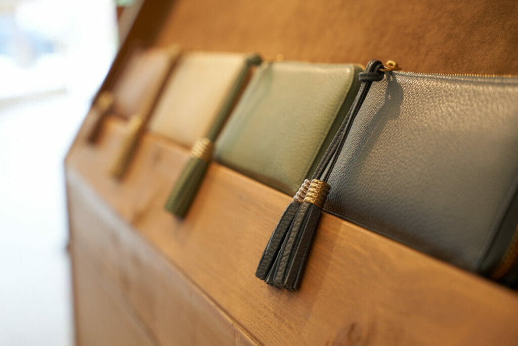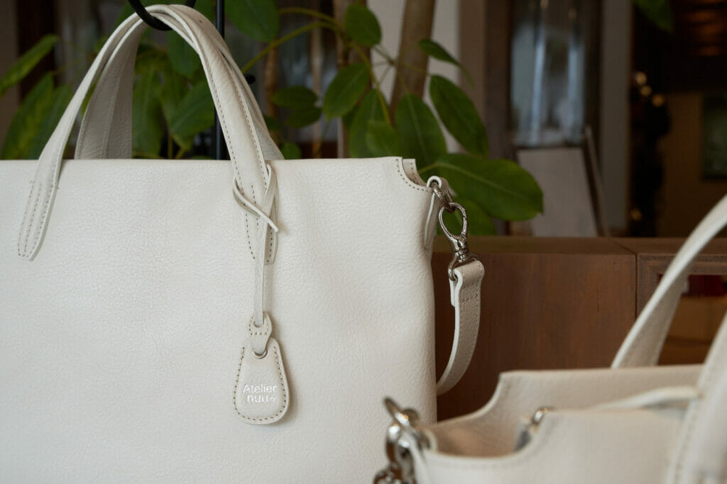 以「chic&natural 素材美」為概念展開的 Atelier nuu 直營店。期望能成為可長久貼心陪伴使用者日常生活的品牌。經典款皮革配件採用自家工廠邊角料製作,可永續使用的皮革小物蔚為話題。