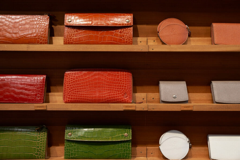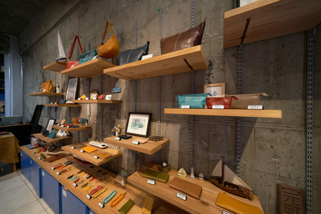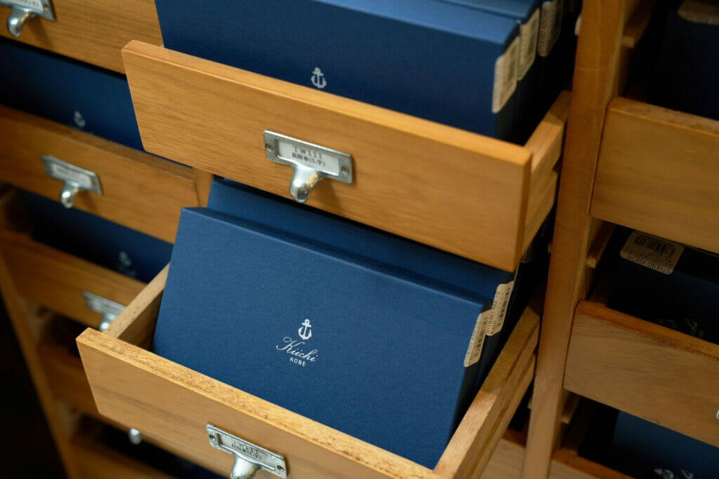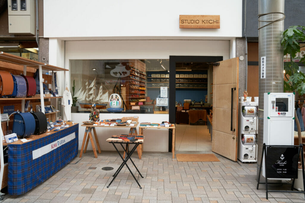 以神戶元町為據點的皮革品牌「KIICHI」直營店。由船錨為靈感延伸而出的品牌標誌,彷彿飄盪著淺淺的海風氣味。選用全球知名神戶牛的副產物開發神戶皮革產品,期望能以此實現時尚產業的在地生產、在地銷售。
