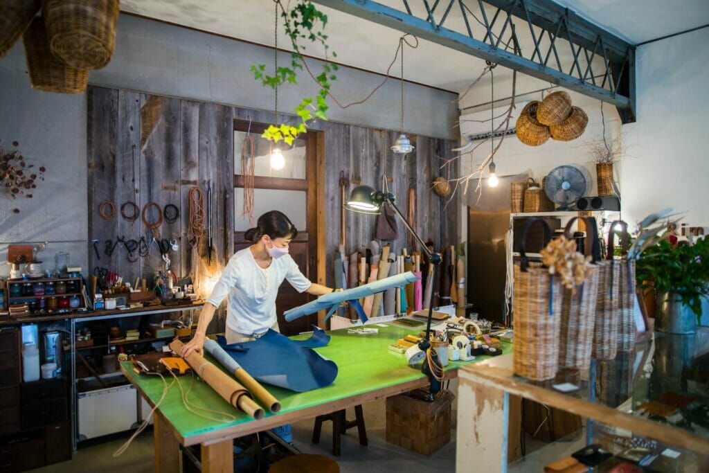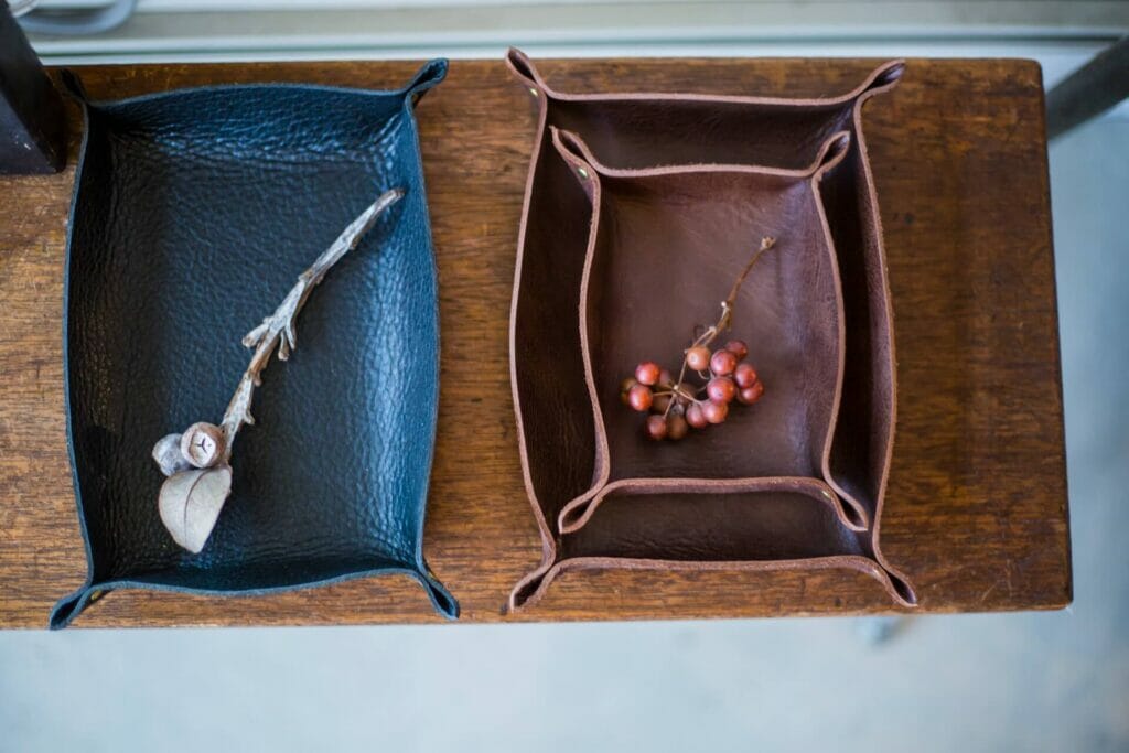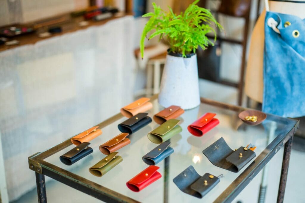 裁、貼、縫、磨,所有工序皆由手工完成。在商店兼工作室中除了可購買現有商品外,也可定製想要的顏色。來這挑選日常生活中可以一直相伴,融入使用者日常生活,只是拿在手上便能感愛到愉悅的皮件單品吧!
